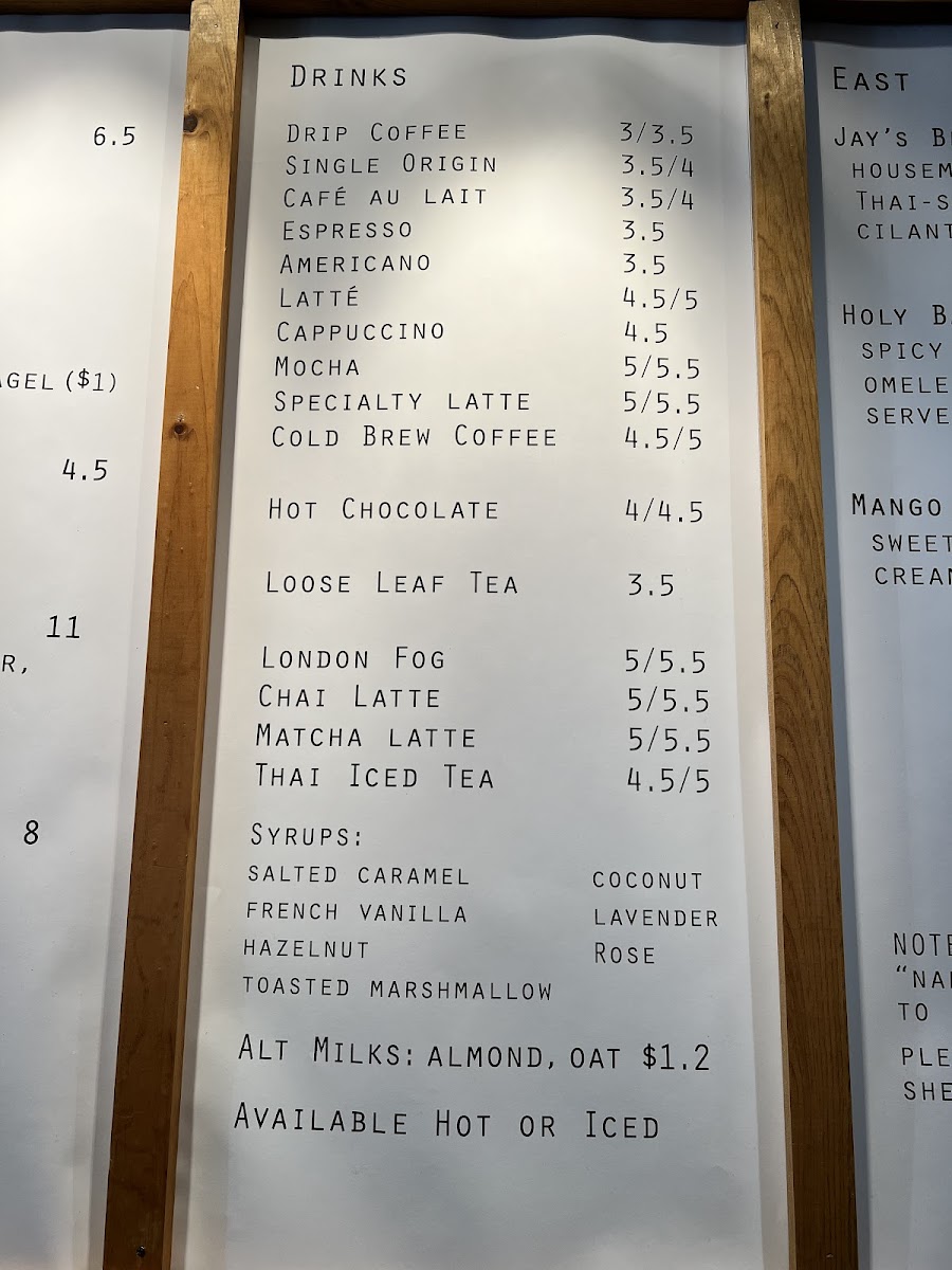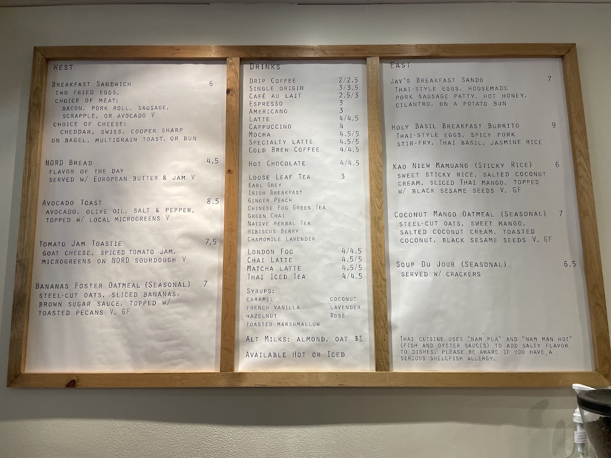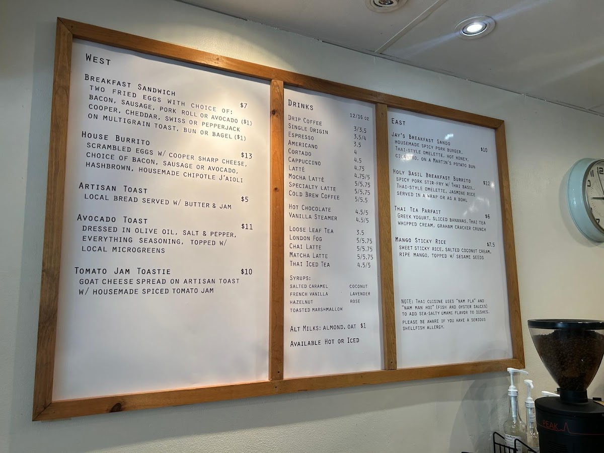 Breakfast favorites like avocado toast and hearty breakfast sandwiches are easy choices for morning visitors, while lighter options such as coconut mango oatmeal or chia berry bowls provide nourishing, wholesome fuel. During the day, casual sandwiches and wraps—like the tomato jam toastie or the Thai-inspired Holy Basil burrito—offer satisfying, flavorful lunches that reflect the café’s cozy and welcoming atmosphere.